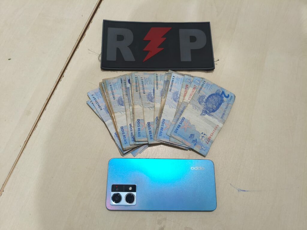 Durante a abordagem e revista pessoal, foi encontrado em posse do indivíduo o aparelho celular subtraído e a quantia de R$ 70,00. Questionado sobre o restante do valor, o conduzido relatou ter utilizado parte do dinheiro para aquisição de entorpecentes.