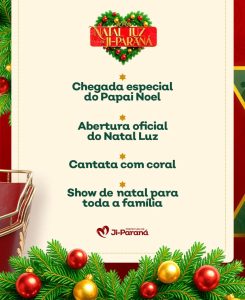 A Prefeitura de Ji-Paraná reforça seu compromisso com a valorização da cultura, do lazer e das tradições, proporcionando momentos que fortalecem os vínculos familiares e mantêm viva a magia do Natal na cidade.